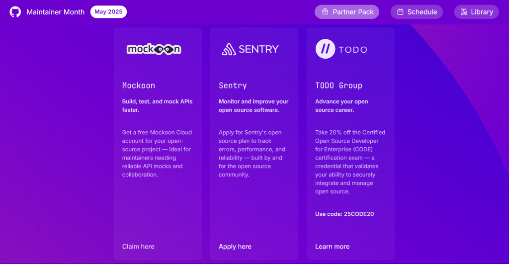 Visit the Maintainer Month Partner Pack to learn more about the other offers available from the Maintainer Month partners.